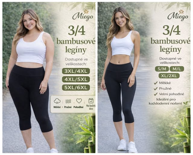 bambusové 3/4 černé, 36/38