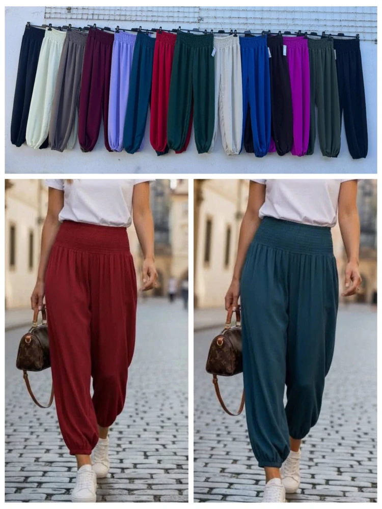 lehké kalhoty do gumy, moka na cca 36-42